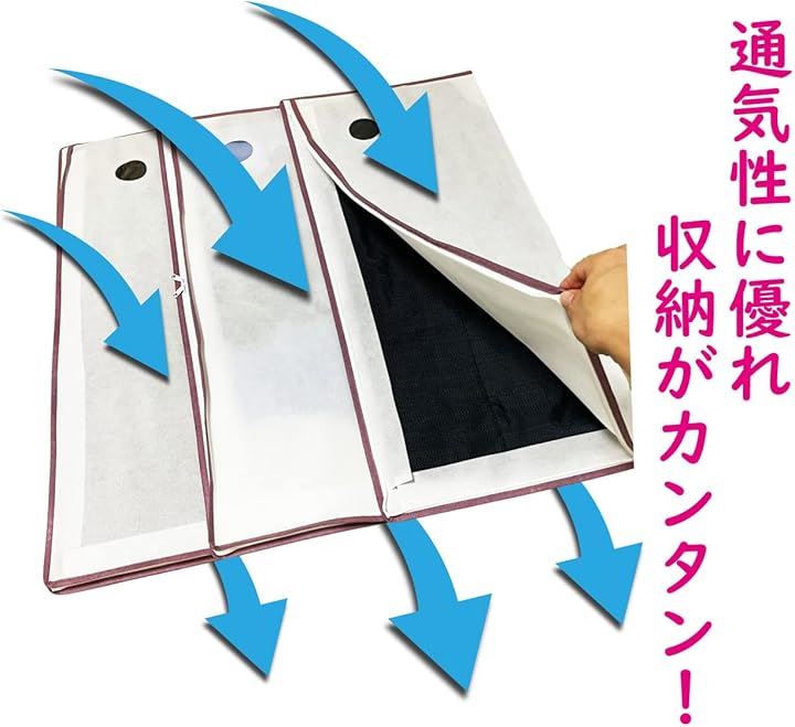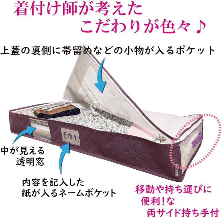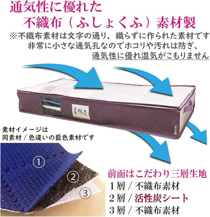 「通気性が良く耐久性のある不織布製」着付け師が考えたこだわりがいっぱい。通気性の良い厚手の不織布(ふしょくふ)製なので、ホコリを防ぎ湿気やにおいがこもりにくい。