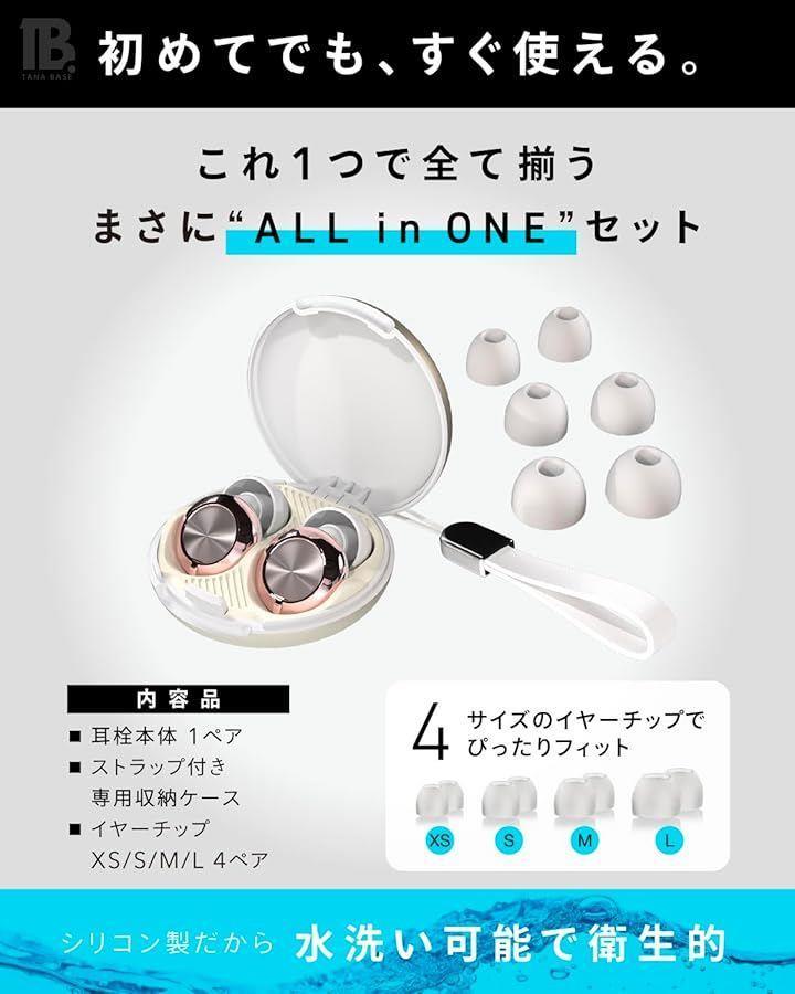 v 「仕様」サイズ:耳栓本体22x15.5x15.5mm/ケース41x17mm 重量:約21g(本体)・約35g(ケース含む) 素材:シリコン・ABS樹脂 カラー:ブラック/ホワイト *モニター環境により色味が異なる場合があります。