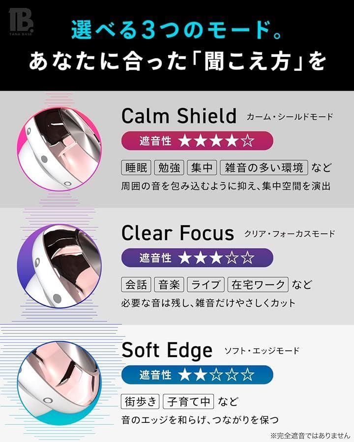 独自の3段階音量調節機能により、静かな環境では軽めに、騒がしい場所ではしっかりと遮音するなど、シーンに合わせて使い分けが可能。