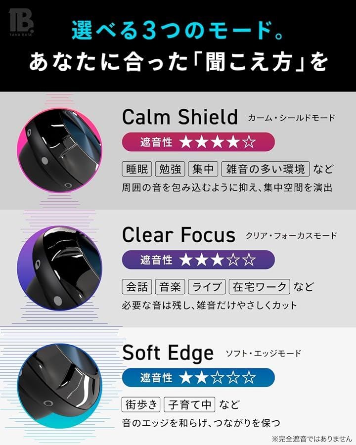 独自の3段階音量調節機能により、静かな環境では軽めに、騒がしい場所ではしっかりと遮音するなど、シーンに合わせて使い分けが可能。