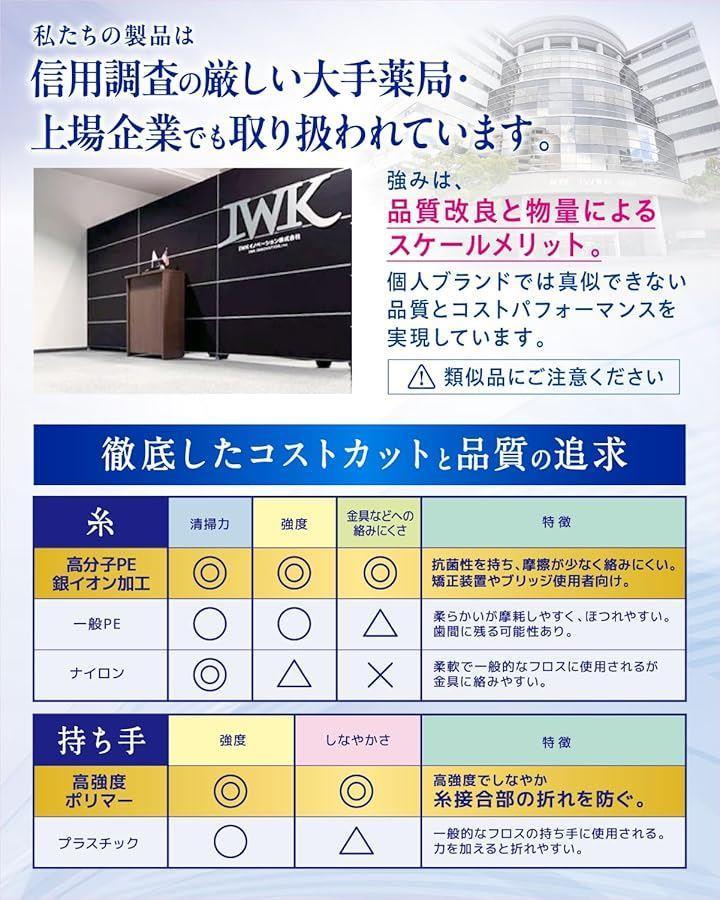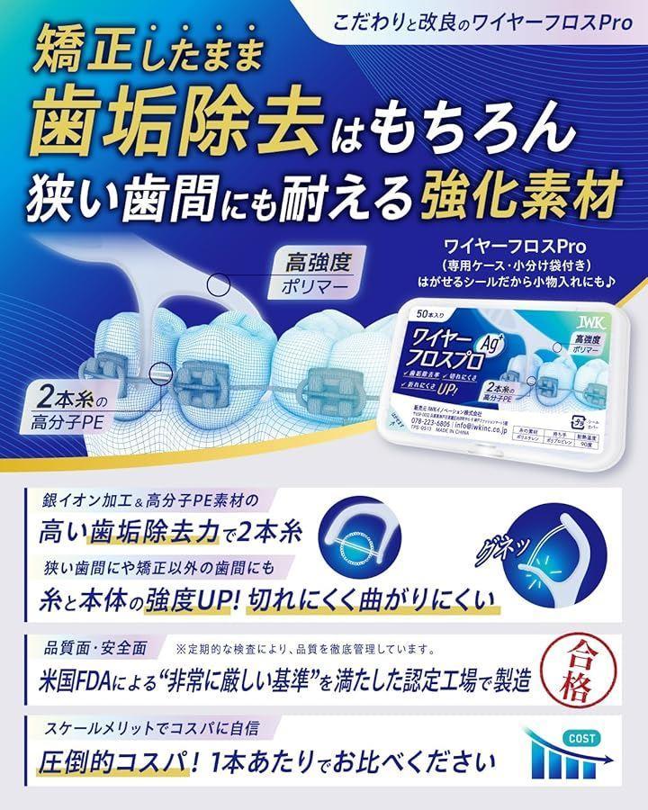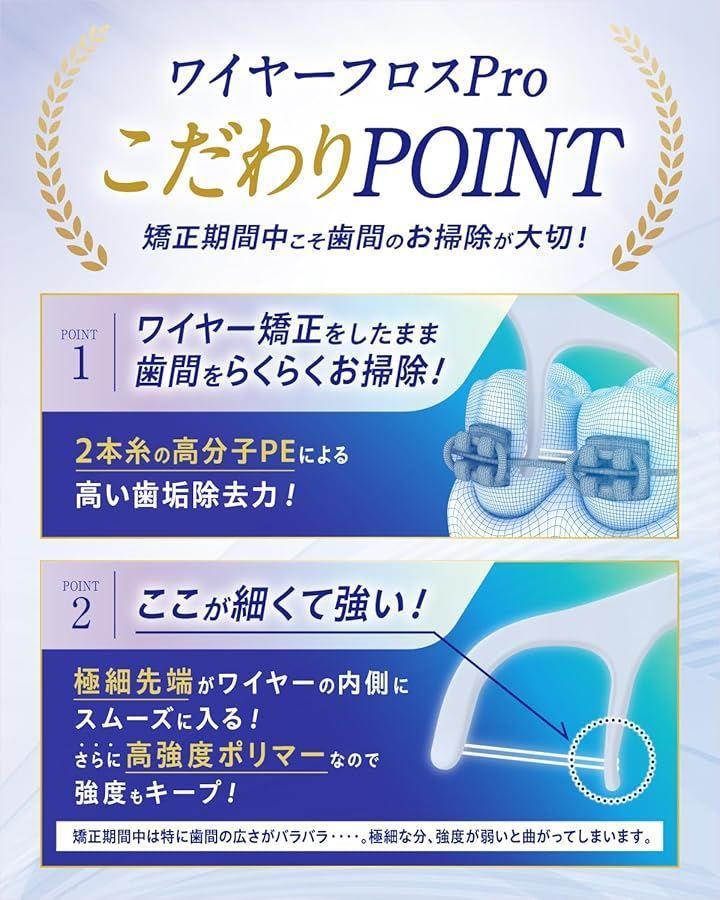 「しっかり取れる2本糸構造」 高い歯垢除去力で2本糸 糸と本体の強度UP。切れにくく曲がりにくい