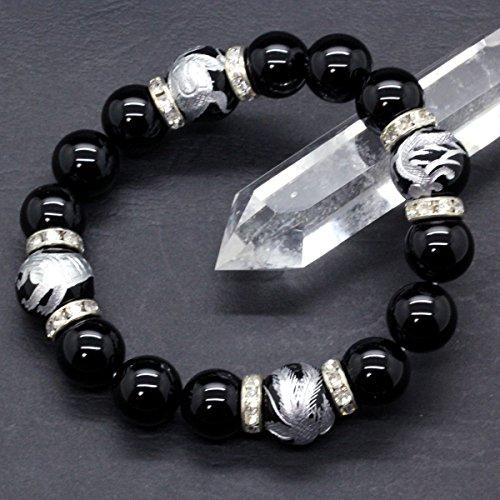男性用 内周約17cm(伸縮します) 銀彫り四神獣オニキス14mm オニキス12mm シルバーロンデル