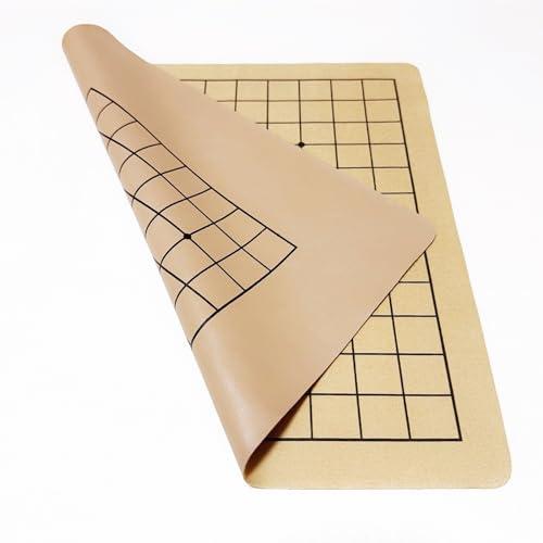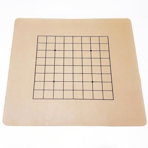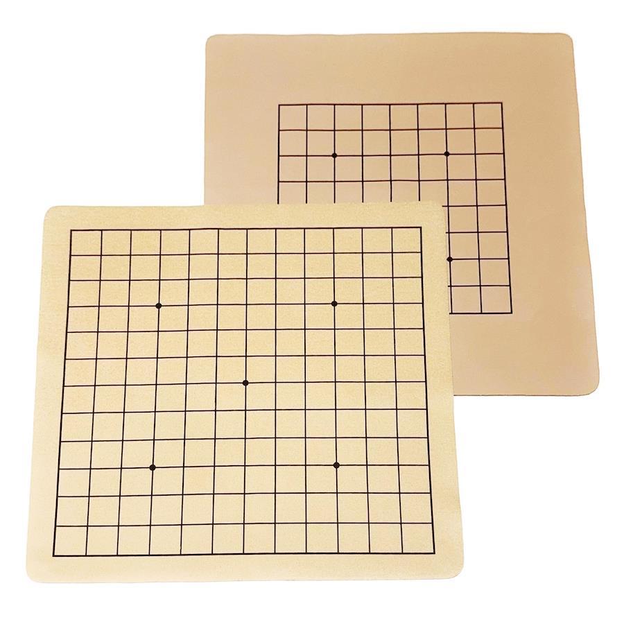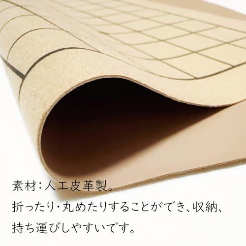 人工皮革製の標準サイズ碁盤です。表13路盤+裏9路盤のリバーシブル仕様です。 サイズ:約32.5×31cm。厚さ:約1.5mm。コンパクトサイズで、初心者や手軽に囲碁を楽しみたい方に最適です。 碁石を打つ際にも音が静かなので特にマンションにお住まいの方や、音が気になる方におすすめです。 素材は柔らかい人工皮革製ですので、折ったり・丸めたりすることができ、収納、持ち運びしやすいです。塩ビ製碁盤と比較して、皮革製碁盤は滑りにくいので、打ちやすいです。人工皮革は本革に近い見た目となるので、質感がありがあります。 シワになりにくい人工皮革材質ですが、万が一折り目にシワが発生する場合がありますが、開いてそのまま放置すれば、半日でシワがなくなります。