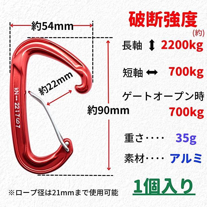 ・「素材」アルミ A7075 「重量」35g/個 「サイズ(約)」全長:90mm 幅:54mm *ロープ径:21mmまで