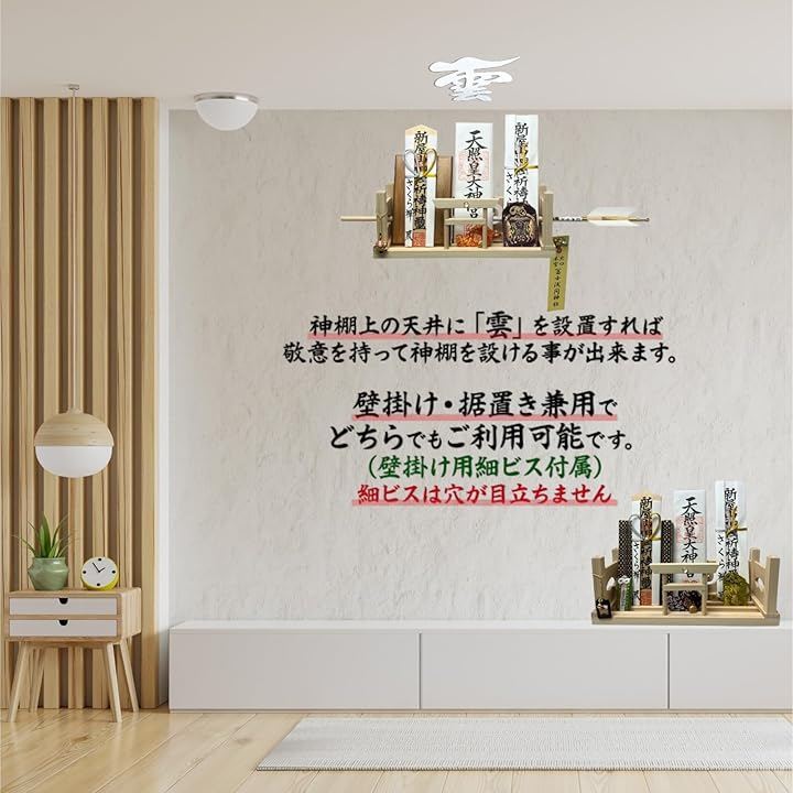マンションにお住まいの方には、雲字と一緒にお祀りする事で、神様により敬意を持って神棚を設けられます。