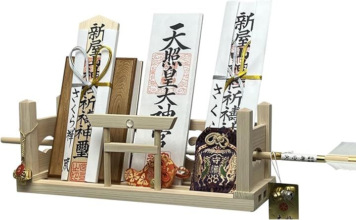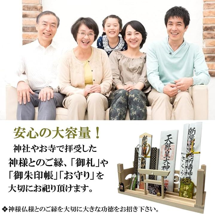 「神棚の用途」お札立て、御朱印帳飾り、御神札飾り、御守り飾り、木札差し、御守り入れ、破魔矢飾り 「 招福 初宮詣 七五三詣 合格祈願 厄祓い 金運 必勝祈願 新車祓 商売繁盛 結婚式 その他、諸祈願など 」