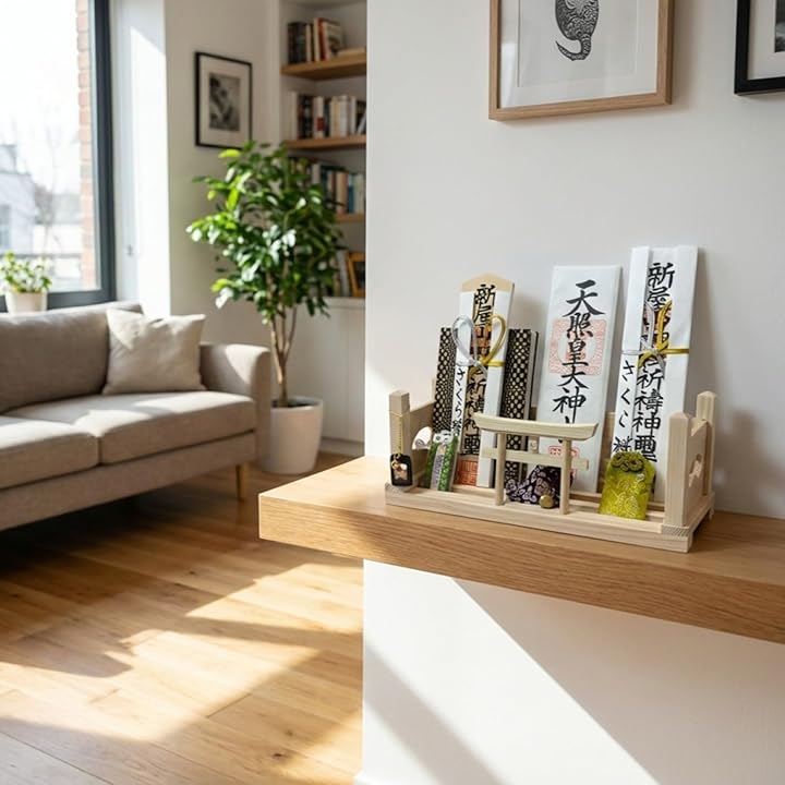 「用途多彩なモダン神棚(壁掛け・据え置き兼用)」神社やお寺から授与された御札やご朱印帳、御守や破魔矢などの保管場所って・・なかなか良い所がありませんよね。?そんな多くのお悩みの声から誕生したモダン神棚です。