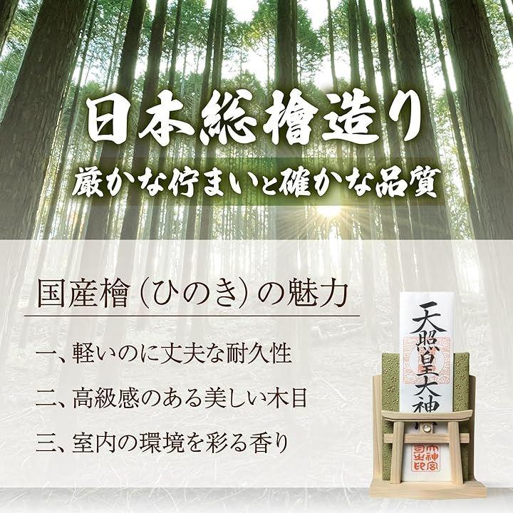 通常配られる頒布大麻を縦に数枚お祀りする事が出来き、御朱印帳や木札など、厚みのある物もお祀りできる神棚です(約3cm位まで)