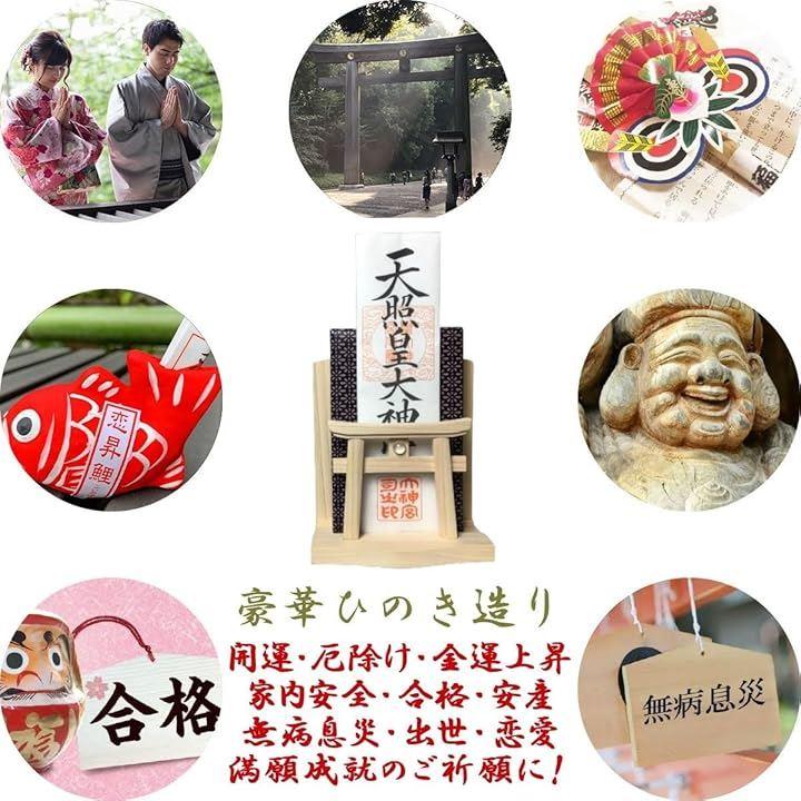 「神棚の用途」お札立て、御朱印帳飾り、御神札飾り、御守り飾り、木札差し、御守り入れ、破魔矢飾り 「 招福 初宮詣 七五三詣 合格祈願 厄祓い 金運 必勝祈願 新車祓 商売繁盛 結婚式 その他、諸祈願など 」