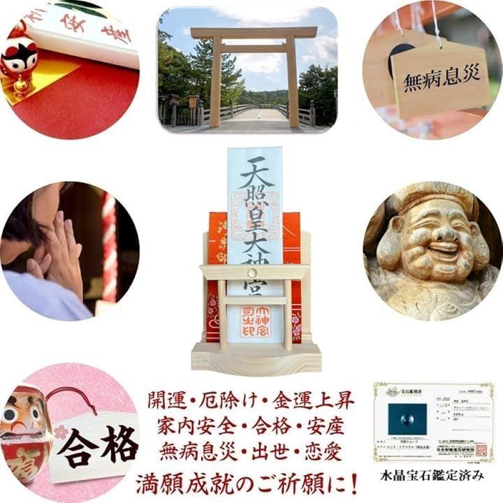 「スペック」素材:天然白松 特製水晶鳥居 サイズ:本体(約)縦16cmx横14cmx奥行8.5cm 重量:約160g