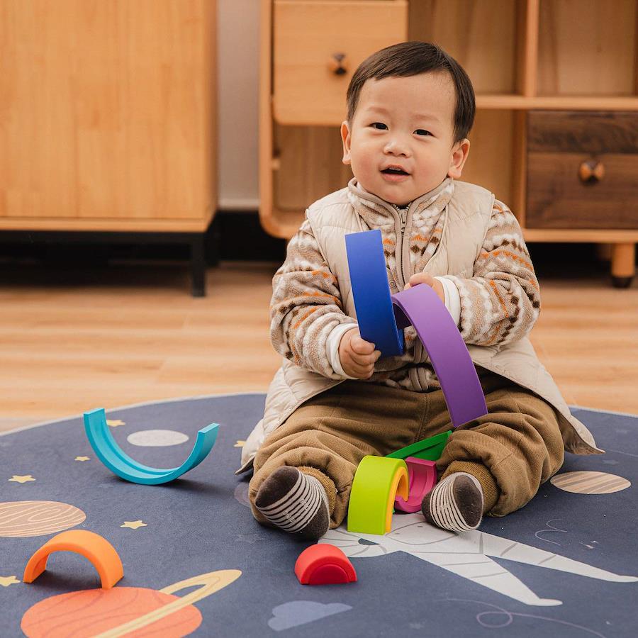 【バランスゲーム】より高い建てて、虹色積み木を落られないようにブランすゲームをします。いつ崩れるか分からないドキドキ感が魅力を夢中になって、アーチレインボーを楽しみます。バランス感覚・集中力・忍耐力・観察力・挑戦力を育ちます。 【目と手の調整能力】虹の積み木を遊びながら、其々のサイズとカラーを子供の知力を開発して、空間認識能力を鍛えます。ブロックを遊びながら、視覚を刺激して、色認識を促進します。細かい指先訓練をさせて、目と手の調整能力を開発します。 【想像力と審美感】シンプルな幾何学デザインですが、無限大な組合せる方法があります。見立て遊びで子供の創造力を十分に刺激して、遊びを夢中になります。虹のトンネルを建てる内に赤ちゃんの審美感を形成されて、右脳の芸術の潜在力を掘られます。 【前向きな早期性格を形成】モンテッソーリの早期教育です。積み木を遊びながら、幼児の自発性が尊重される自由で個々にあります。自主性や積極性が身に付いて、勉強を楽しみになります。情緒をコントロールできて、根気強い子を育てます。 【腐敗しないシリコン製】分厚くて大きいビーズは誤食することを防ぎます。安全無毒のシリコンを厳選して、口に入れても心配ないです。インテリアと撮影道具から入園祝い、クリスマスギフト、誕生祝い、出産祝いまで使用幅が広いです。200度以下の高温消毒・ゆで消毒可能です。