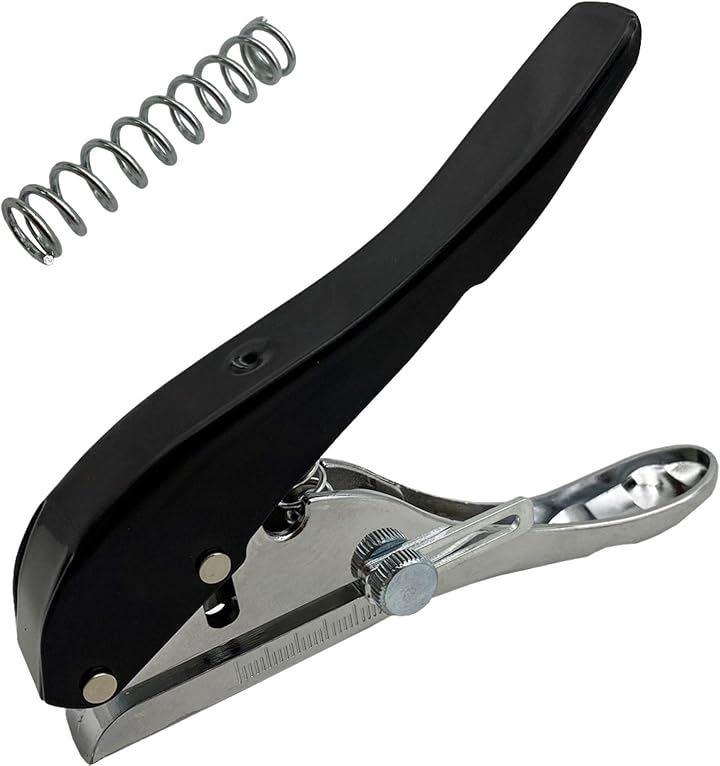 「穴開けパンチ」でお困りのあなた こんな悩みありませんか? 材料を余すことなく使いたい…軽い力で穴を開けたい… お手頃で解決できる物が欲しい…パンチ距離を調節をしたい… その悩みをスッキリ解決。 軽い力で開けられる.バネ付1穴パンチ.