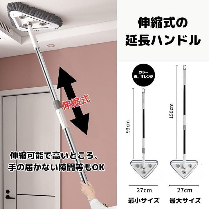 「商品仕様」カラー:グレーxホワイト、オレンジxグレー サイズ:93cm~150cm セット内容:モップ素材2枚、マイクロファイバークロス2枚 *モニターの環境により、色の見え方に若干差が生じる場合がございます。