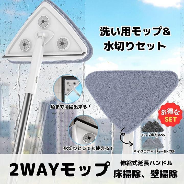 「便利な2WAY仕様」モップとしても、水切りとしても使える多機能モップ。窓掃除はもちろん、床掃除、壁掃除、天井までこれ一本で様々なお掃除にお使い頂けます。