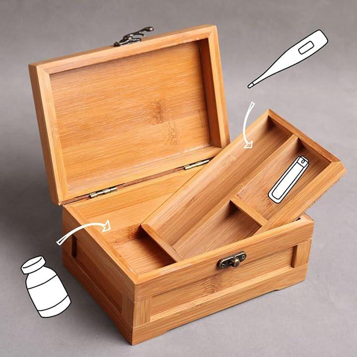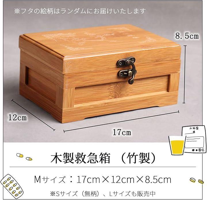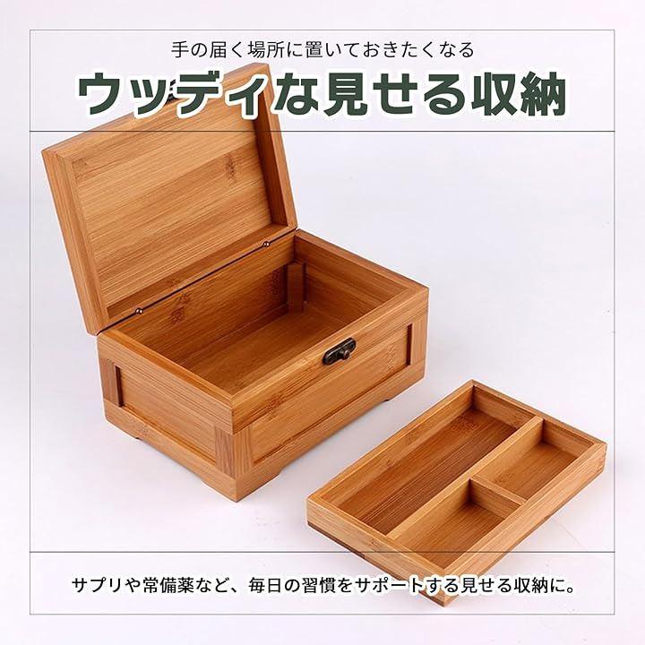 「収納力抜群の竹製救急箱。」 竹製の頑丈な作りで、メディカルグッズをしっかり収納できる薬箱です。