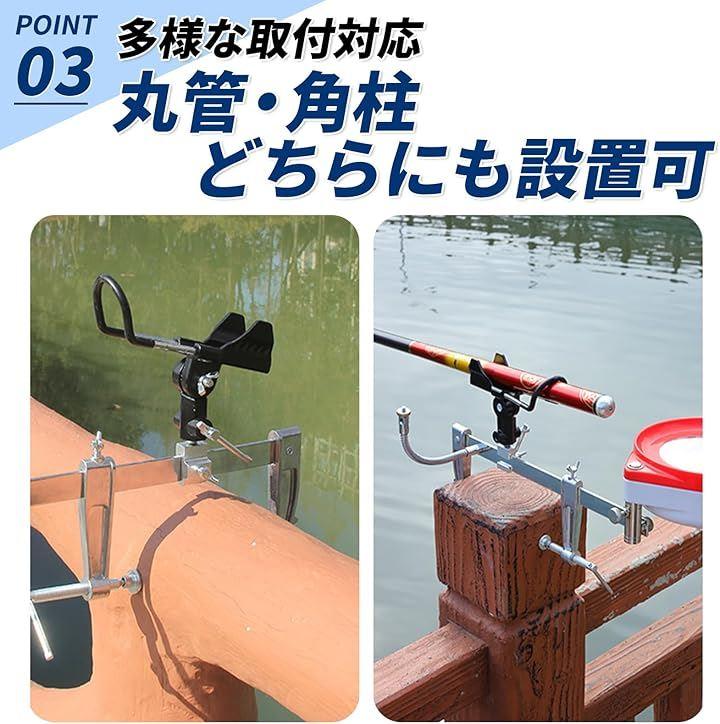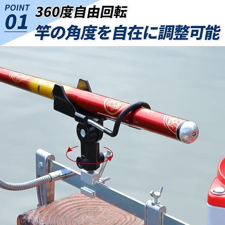 360度回転+90度上下調整機能付きで、釣り竿の角度を自由自在にコントロール可能。