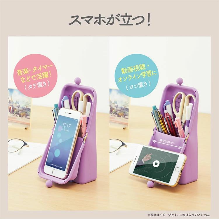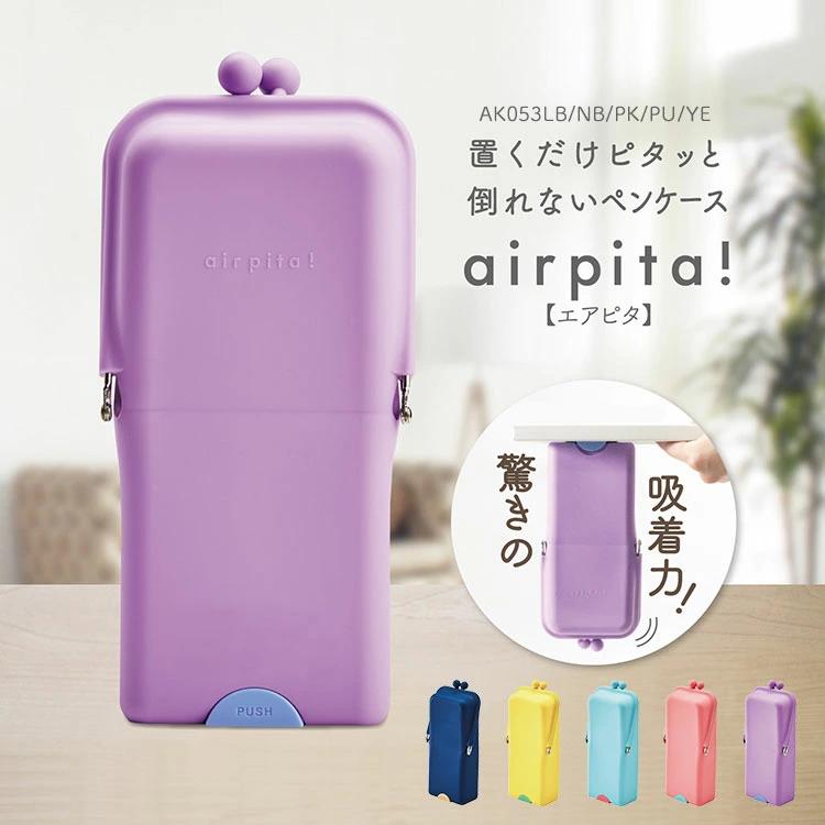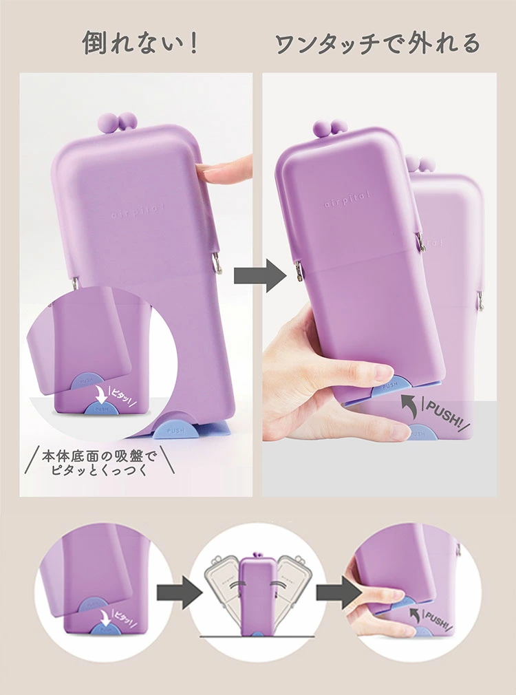 【エアピタ】・置くだけピタッとたおれない・空気のチカラでくっつく吸盤・タテにもヨコにもスマホが置ける・大容量、ガバッと開くがま口タイプ