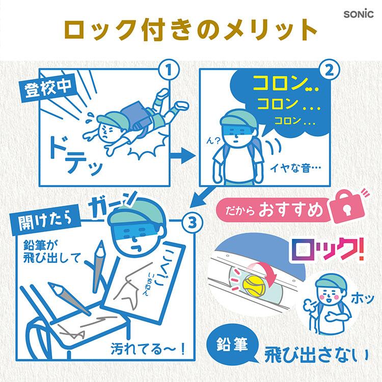 【ブレイブ アルロック筆入】飛び出し防止!【アルロック】中身の飛び出しを防止するロック機能付ランドセルの前ポケットにも、横向きにも入る!小学校の標準的な筆入の中身の持ち物リストに対応。取り外せる鉛筆削り付