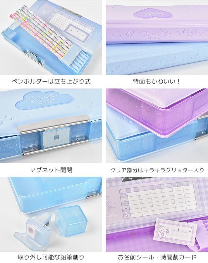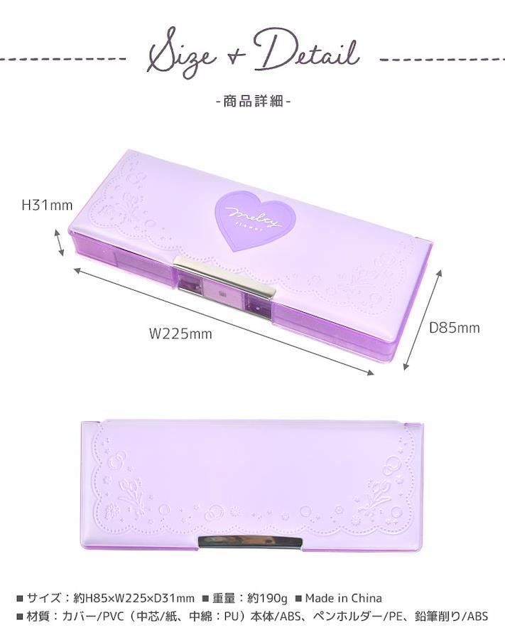 ■素材カバー:PVC(中芯/紙、中綿:PU)本体:ABS、ペンホルダー:PE、鉛筆削り:ABS