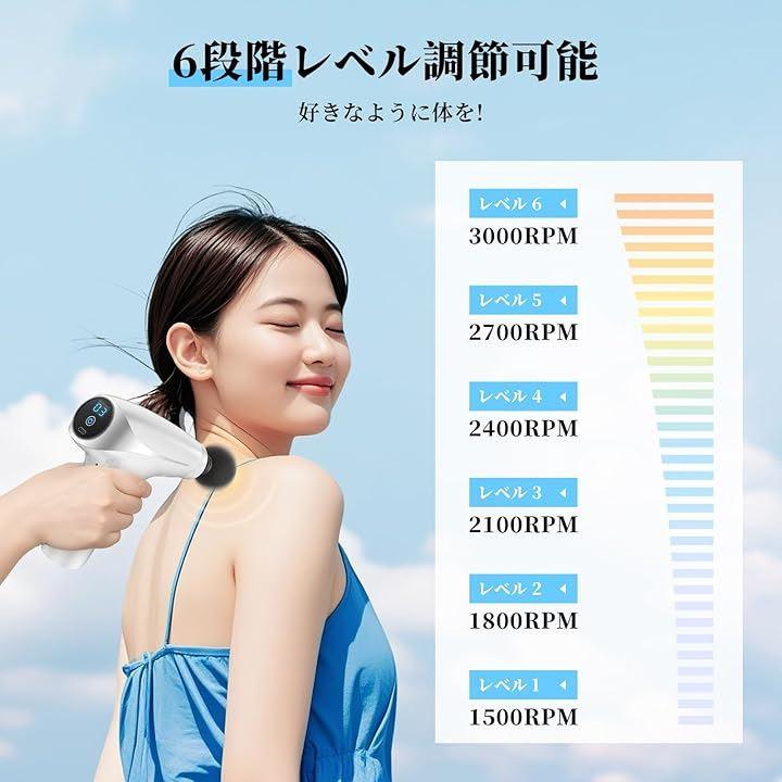 また、6段階の振動レベル調整が可能で、最高回転数は3000rpm、お好みやリラックスしたいシーンに合わせてご使用いただけます。