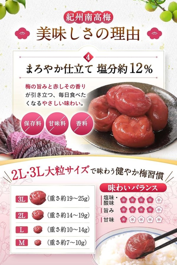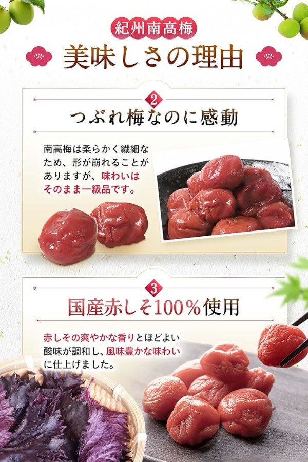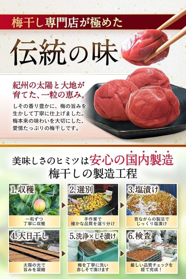 梅本来の旨みを大切にし、伝統仕込みでとろける果肉を楽しめます。