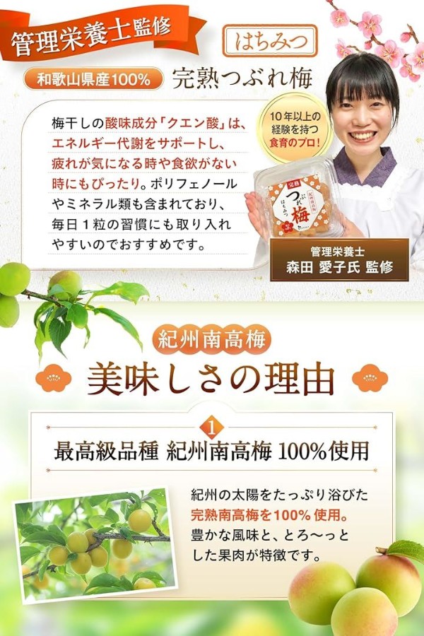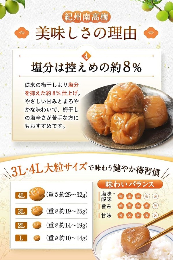 梅干し専門店仕込みの伝統の味わいで、とろける梅肉が食欲をそそります。