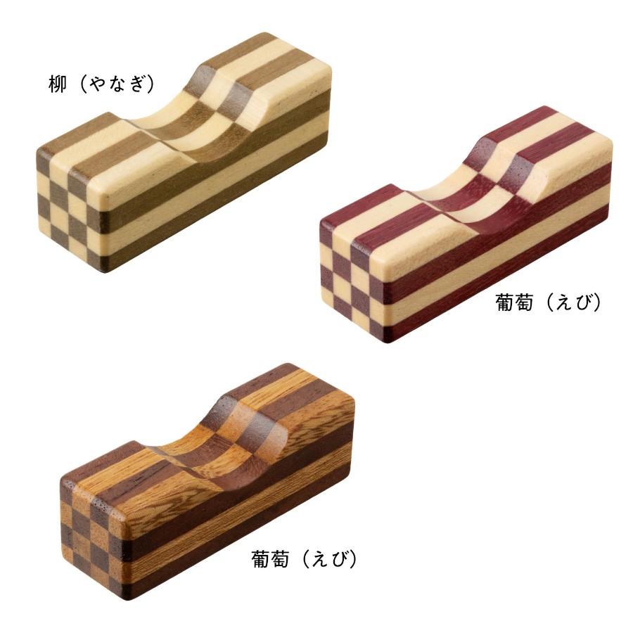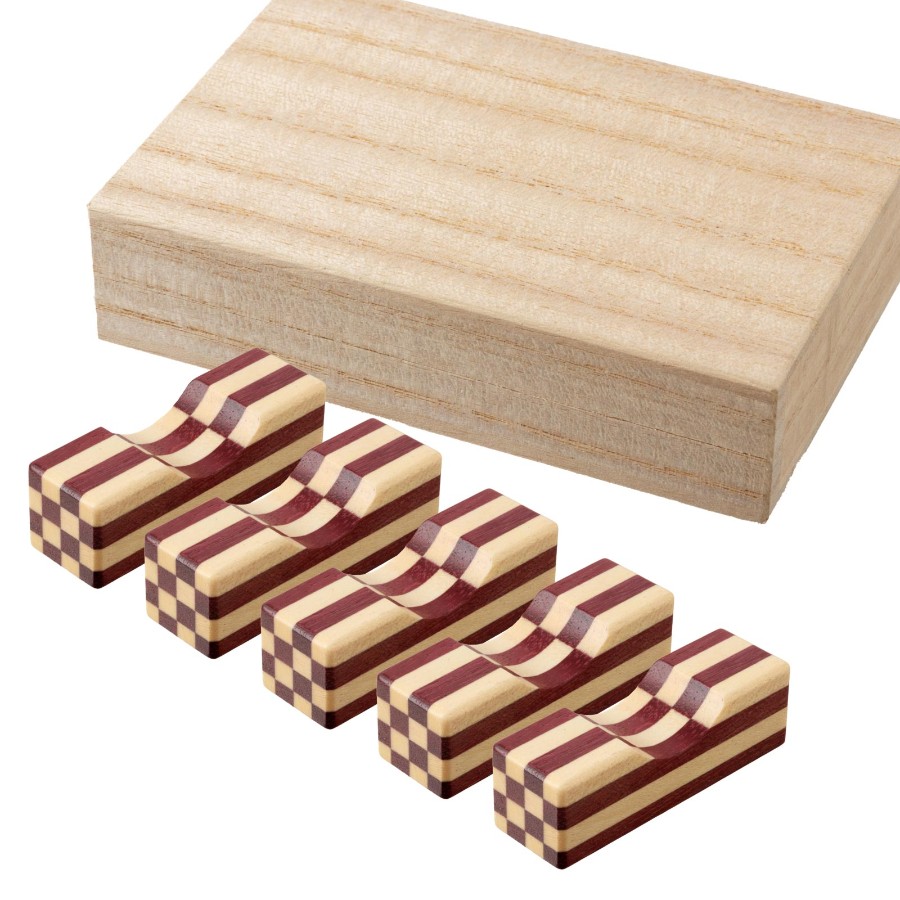 箸を置く、その所作まで整える。箱根の伝統「寄木細工」で仕立てた、市松模様の箸置き。無垢寄木ブロックを削り出し、日常使いしやすい仕上がりに。5cmの扱いやすいサイズで、普段の食卓から来客時まで。7色から選べる楽しさと、並べたときの美しさも魅力です。