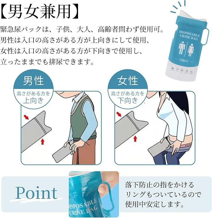 「男女兼用」 緊急尿バックは、子供、大人、高齢者問わず使用可。
