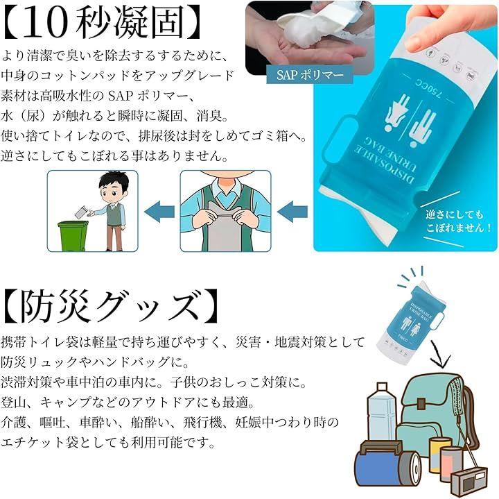 「防災グッズ」 携帯トイレ袋は軽量で持ち運びやすく、災害・地震対策として防災リュックやハンドバッグに。