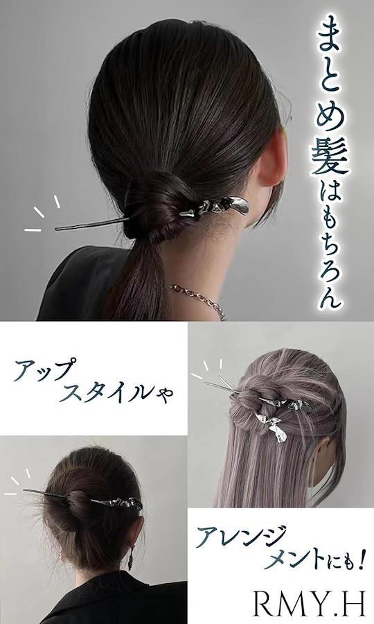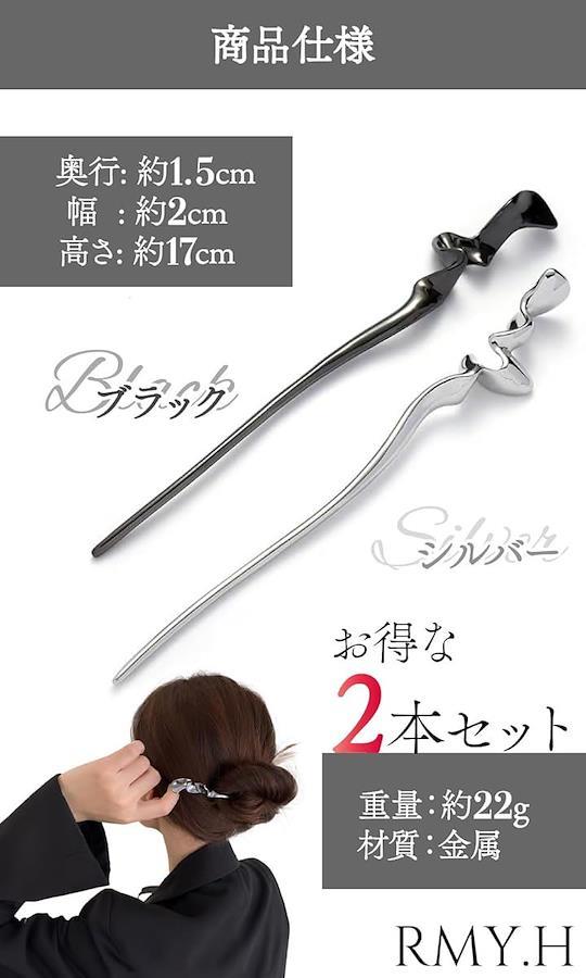 シンプルでオシャレを演出するヘアステっクでシルバーとブラックの2本セットです。