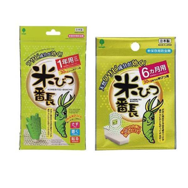 製品の特徴●ワサビ成分でお米を虫や菌・カビ※から守る米保存用防虫剤。●米びつ内に入れておくだけで、ワサビ成分が効きイヤな害虫を寄せつけません。●30kgまでの米びつ用で、1年間有効成分が効きます。●コクゾウムシなどの害虫、菌、カビからおいしいお米を守ります。※●ワサビの形をしたスティックタイプ。●米びつ内に「さす」「置く」「貼る」の3ウェイで使えます。●どんな米びつにも使いやすい。●日本製。※全てのカビや菌を防げるわけではありません。