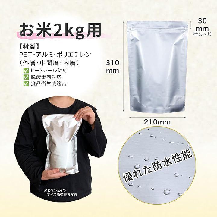 米 保存袋 2kg用10枚 お米 保存容器 米袋 食品保存容器 アルミ袋 チャック付き 食品衛生法適合品 遮光袋