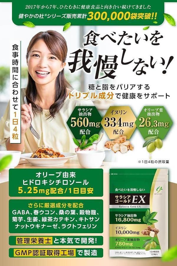 「配合量120粒」サラシア、イヌリン、オリーブ葉を多く含有させることにより120粒のサプリとなりました。