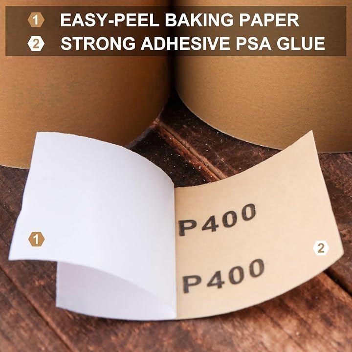 粘着性の裏地:PSA(感圧接着剤)の裏地により、サンドペーパーを空気圧エアファイルサンダーシュー、しっかりしたまたは柔軟なロングボードファイルボード、ハンドサンディングブロックなどにすばやくしっかりと取り付けることができます