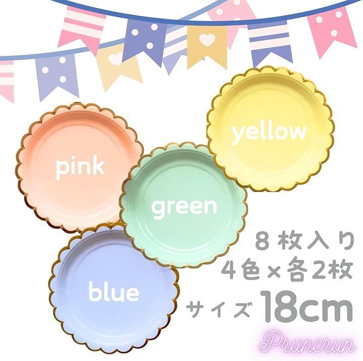 パーティー用使い捨て紙皿8枚入り、直径18cm