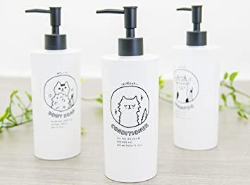 ボトルの中身をネコのイラストで表現したかわいいディスペンサーシンプルな白のボトルがさわやかな印象