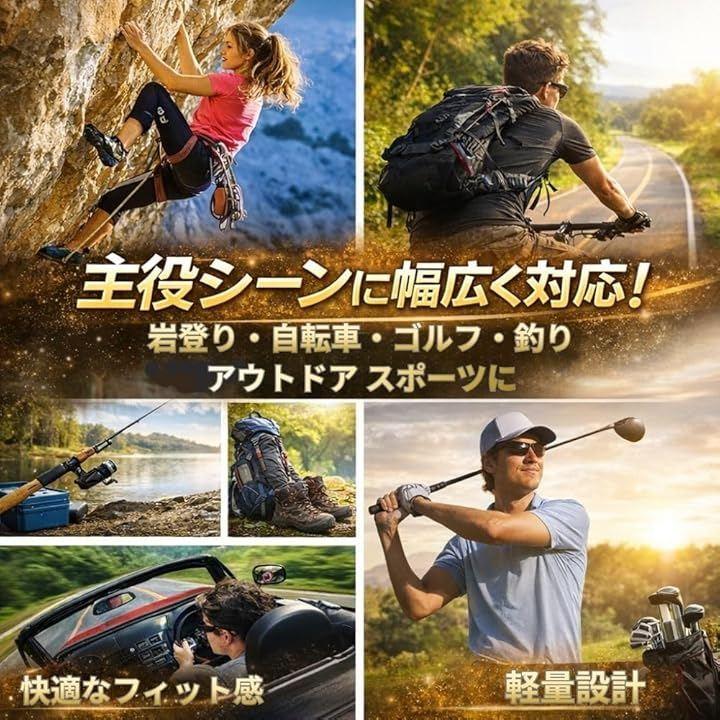「幅広いシーンに使えるユニセックスデザイン」釣り・ゴルフ・サイクリング・ドライブ・アウトドアなど幅広いシーンに対応。
