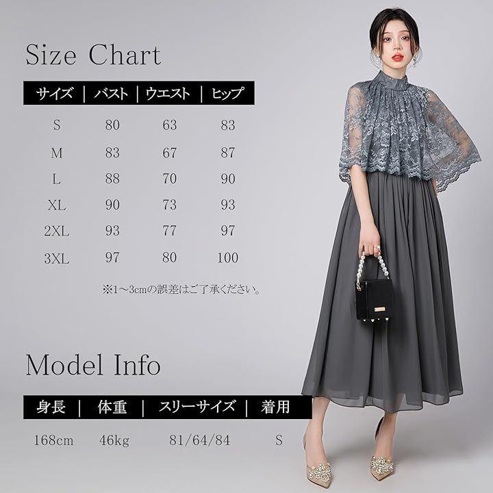 「異素材MIXの華やかなパーティドレス」 このドレスは、優美なレースが織り成すケープ状のトップスと、フワッとエレガントに広がるスカートが特徴の2ピース風ワンピースです。