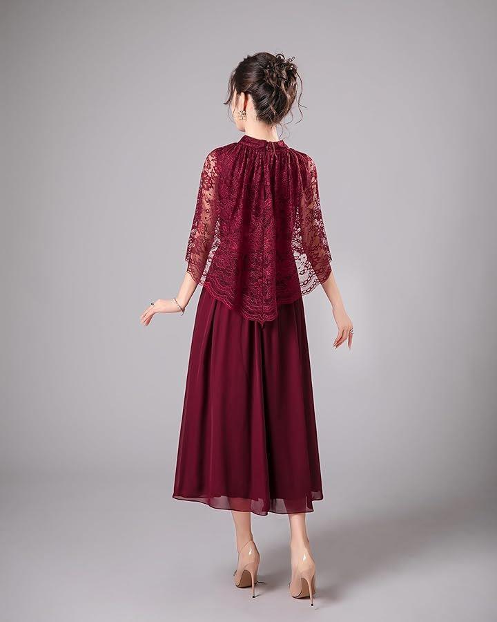 結婚式ドレス ケープ付き ロング レース お呼ばれ 袖あり ミモレ丈 体型カバー Aライン フォーマル