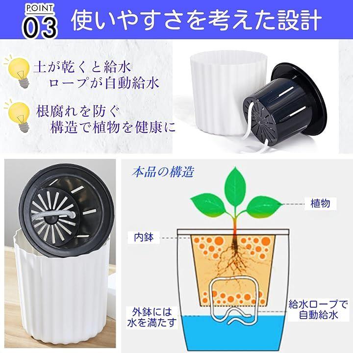 「自動給水の便利さ」このプランターには、給水ロープを使った自動給水システムが搭載されています。