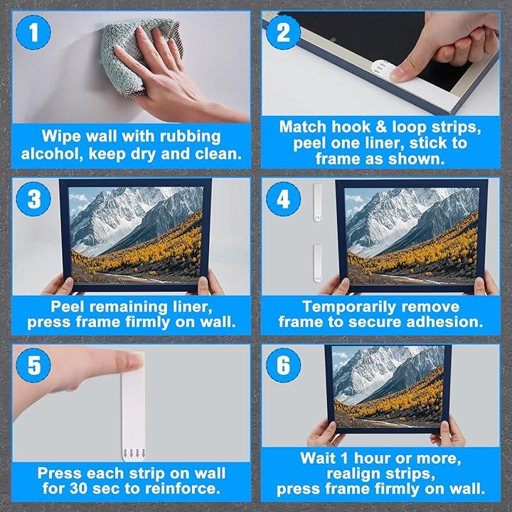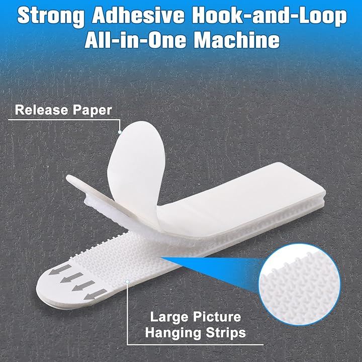 これらのフック&ループ接着ストリップは、釘、ツール、または壁の修理の必要性を排除します。