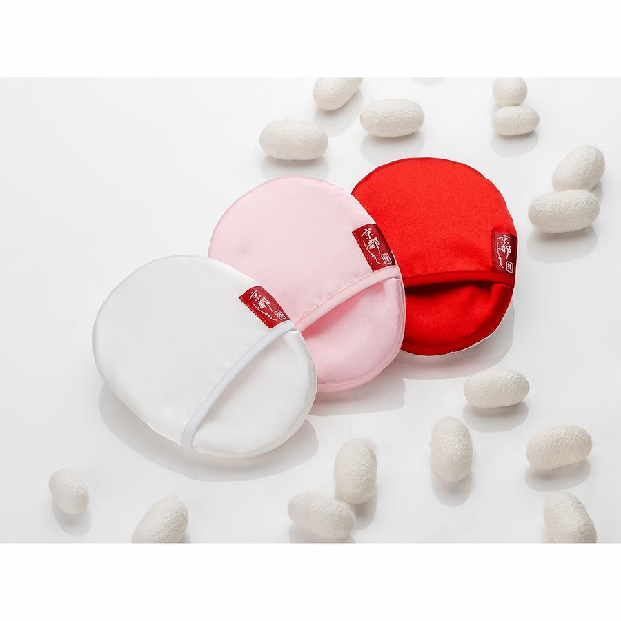 舞妓さんの美肌術京都の花街では、絹の端布でお肌を磨き、キメの整った白く美しい肌を保つ知恵がありました。「珠の肌パフ」は、その知恵を現代女性のスキンケアに生かした、京都しるくの代表作です。