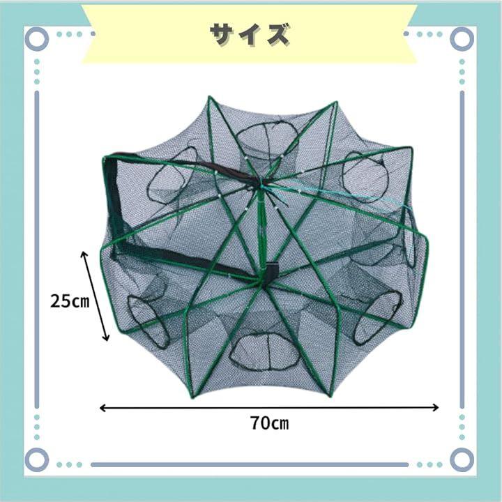 「効率的な捕獲」魚が入って出にくい仕組みで、大物も簡単に捕獲可能です。