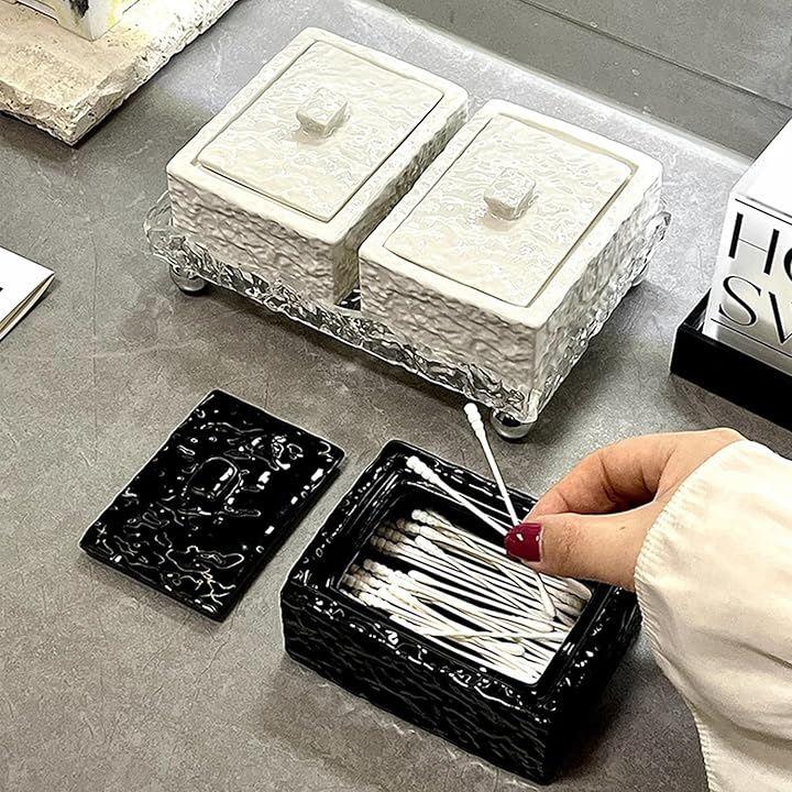 「その他」カラー:ホワイト、ブラック / 用途:綿棒、爪楊枝、コットンなどの収納に最適 / フタ付きでホコリを防ぎ衛生的 / ギフトや新生活、インテリア雑貨としてもおすすめ