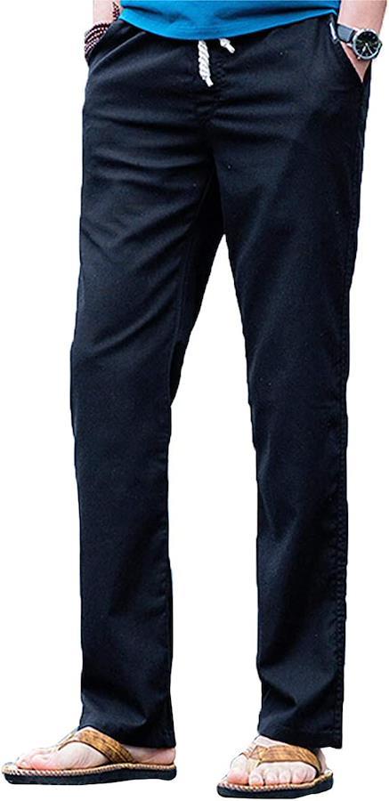 (1)男性スタッフ(167cm、60kg、標準体型、普段M)Mサイズでちょうどです。さらっとした履き心地がとても楽で夏でも長ズボン派の自分には嬉しいです。