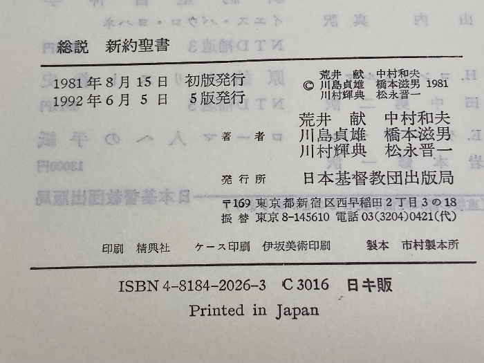 商品名:総説新約聖書 荒井献/中村和夫/川島貞雄/橋本滋男/川村輝典/松永晋一 日本基督教団出版局