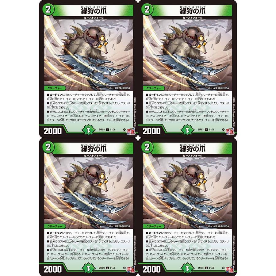 ガードマン(このクリーチャーをタップして、相手クリーチャーの攻撃先を、自分の他のクリーチャーからこのクリーチャーに変更してもよい) 自分のコスト6以上のカードを使うコストを1少なくする。ただし、コストは0以下にはならない。 自分のコスト6以上のクリーチャーが出た時、このターン、そのクリーチャーに「マッハファイター」を与える。(「マッハファイター」を持つクリーチャーは、出たターンの間、タップまたはアンタップしているクリーチャーを攻撃できる) 4枚1セット