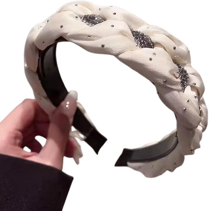 ・「編み込みサテンで高見え」 しっとり光沢のサテンを3本編み。