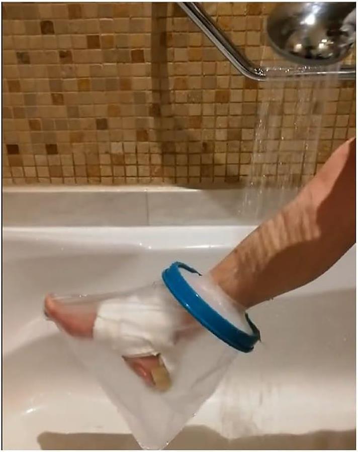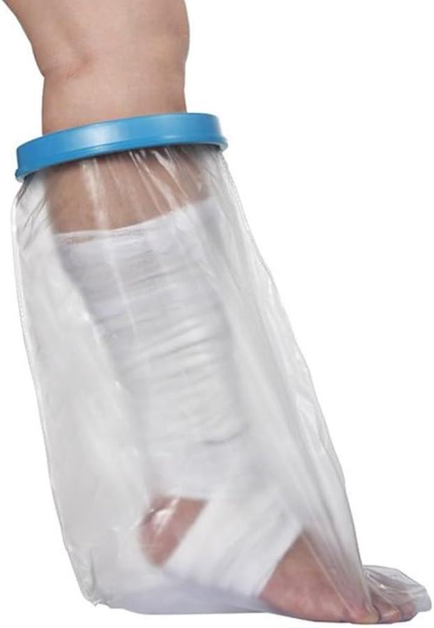 ・ギプスや包帯を装着したままシャワーが浴びられる、大人の足用防水カバーです。