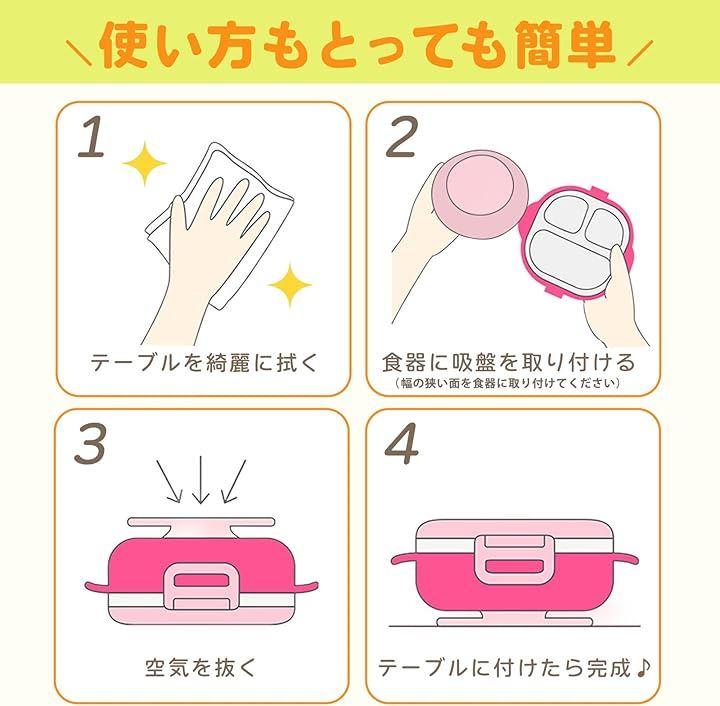 食器を置くだけでテーブルにピタッと吸着、しっかり固定し食器のひっくり返りを防止します